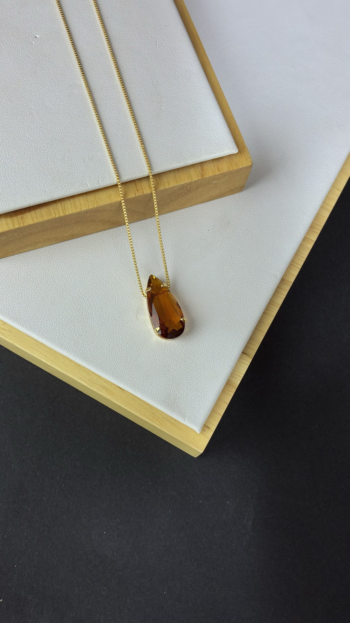 Conjunto Colar e Brinco Pedra Fusion Gota – Caramelo