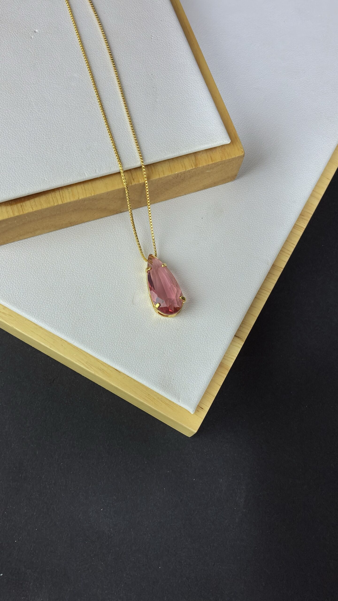 Conjunto Colar e Brinco Pedra Fusion Gota – Caramelo