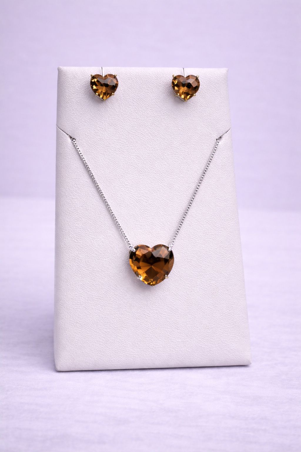 Conjunto Colar e Brinco Pedra Fusion Coração – Caramelo