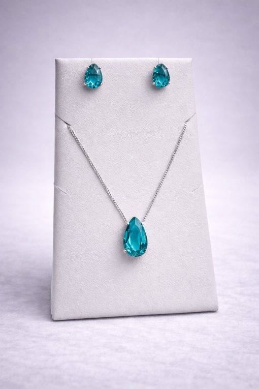 Conjunto Colar e Brinco Pedra Fusion Gota – Blue zircon