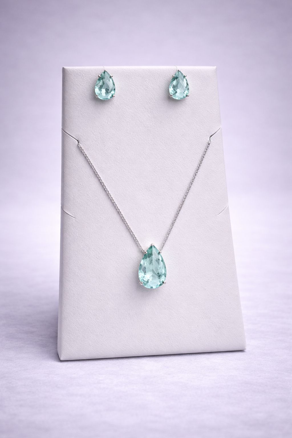 Conjunto Colar e Brinco Pedra Fusion Gota – Verde Agua